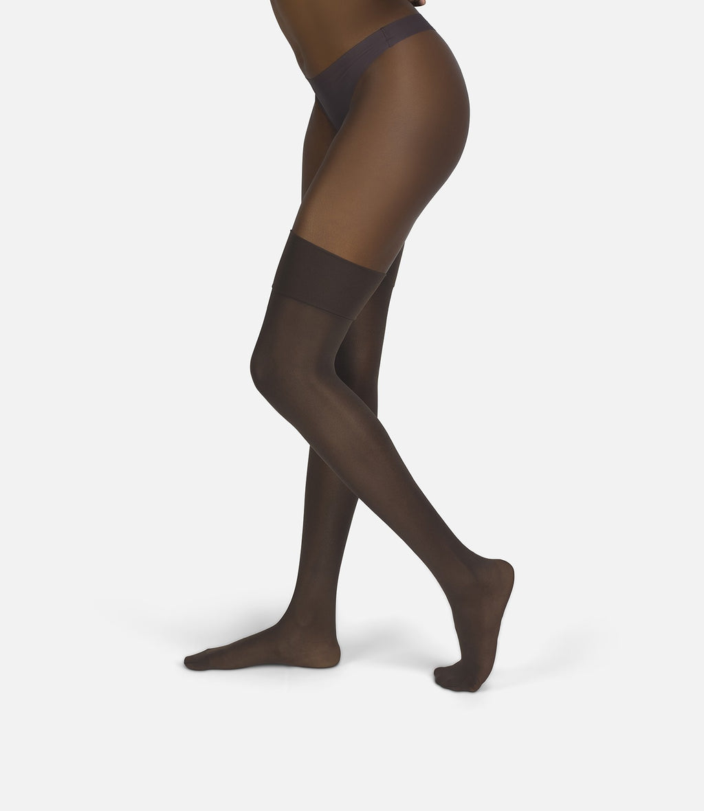 Statement Legs incoming. Unsere 20 Denier Colour Overknees - in Fig, Chili, Grey, Chocolate Brown und Black - sind der einfachste Weg, einem Look einen modischen Farbakzent zu verleihen, ohne sich direkt auf eine komplette Strumpfhose festzulegen. Clean, transparent und ausgesprochen chic verwandeln sie Boots, Minis und oversized Strick in ein bewusst gestyltes Statement.